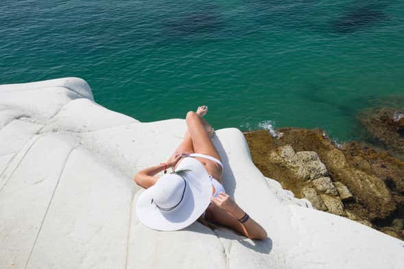 Here, we'll enjoy around 30 minutes to bask in the sun, snorkel, and explore the enchanting underwater world in this area. Following this experience, we'll set our course back, allowing you to soak in the tranquil landscapes along the Agrigento coastline.