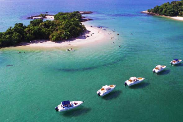 At the time of booking, you can choose the private boat trip you prefer. All options include a Portuguese-speaking skipper, a snorkel mask, fuel, and a cooler with ice to keep your drinks cold. Below are the particularities of each option: