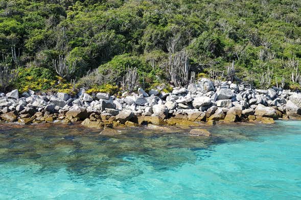 We'll return to the boat and continue sailing the waters of Arraial do Cabo to visit incredible places such as the coral cove of Praia do Forno, where we'll anchor for 20 minutes. From here, we'll travel to Praia de Pontal do Atalaia, one of the most beautiful beaches in Brazil, where we'll also find the Gruta do Amor (Grotto of Love).