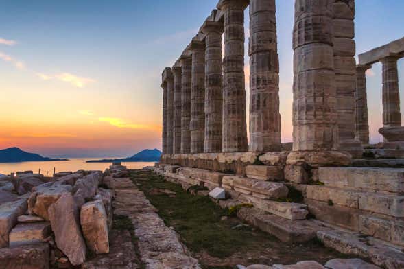 Upon arrival, you will visit the Temple of Poseidon, a splendid construction founded in the fifth century B.C., built on a 60-meter high promontory surrounded by the sea.