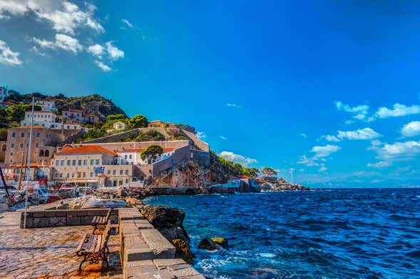 Climb back on the boat and enjoy unparalleled views of the sea on the hour-long journey to Hydra, an old refuge for Saronic pirates. Upon arrival at Hydra’s port, you'll have an hour and 45 minutes of free time to explore its picturesque narrow streets, marvel at its mansions and relax at one of its agreeable cafés. What's more, you'll have the opportunity to make the most of the beautiful beach, sunbathing and enjoying a dip in the sparkling azure sea.