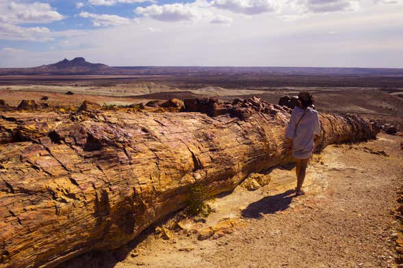 From there, we'll follow the route to the Petrified Forest, where we'll see a large group of fossilized ferns and trunks that date back thousands of years. You'll hear about the origins of this natural phenomenon while enjoying a delicious snack of traditional products.
