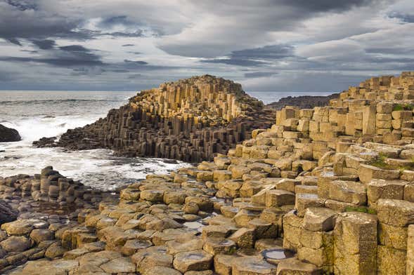 Giant's Causeway is an enormous collection of interlocking basalt columns created around 50 to 60 million years ago by an ancient volcanic eruption. The cooling of the volcanic lava led to the formation of some 40,000 hexagonal basalt columns. According to legend, the columns are the remains of a causeway built by the giant Finn McCool himself.