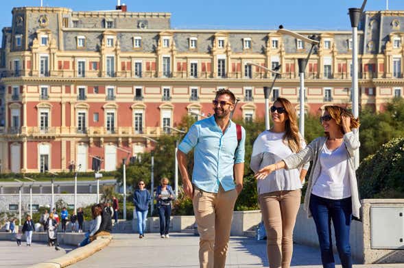 At one end of the beach, we'll stop in front of one of the most beautiful buildings in the city: the Hôtel du Palais. In front of its façade, we'll learn about the history of the marriage between Eugénie de Montijo and Napoleon III, the promoters of this palace-hotel.