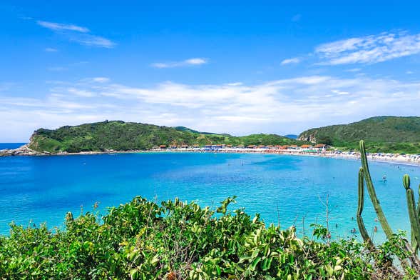 We'll return to the boat and travel to the Farol da Lajinha, a 7-meter (23-foot) tall lighthouse from 1913. Did you know that its lights can reach 9 miles? We'll continue the catamaran ride through Cabo Frio at Praia Brava, so called because of the strong waves that cover the sandy strip at certain times of the day.