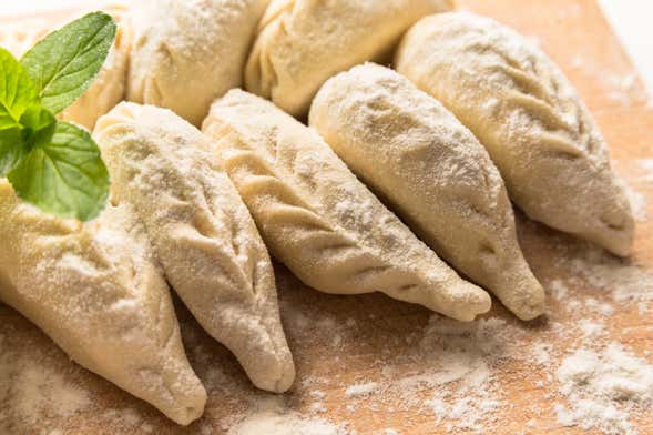 To make the dish, we'll make the pasta, knead it and then prepare the filling, which is normally cheese. Then, we'll close the culurgiones and cook them for a few minutes and finally, they'll be ready to eat!