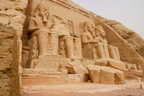 After breakfast, the Nile cruise will finish, but there are still many surprises and attractions to be discovered. First, we'll drive from Aswan to the symbolic Abu Simbel Temple. The stone giants with the busts of Ramses II are not the only emblems inside the temple. The giant sculptures carved in the annex of the Nefertari Temple are also important. After enjoying free time in the afternoon, we'll attend a dinner with a sound and light show over Abu Simbel.