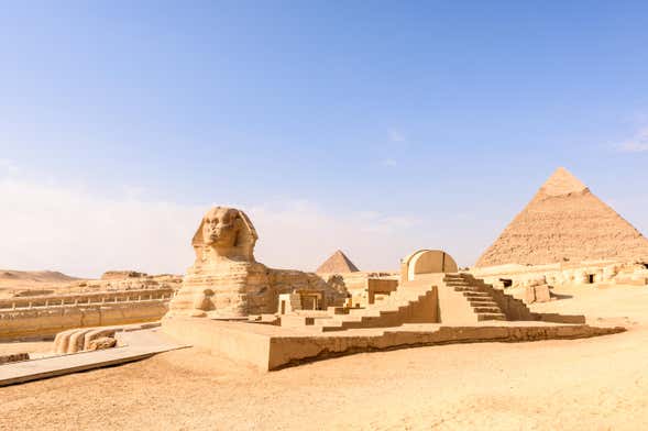 After breakfast at the hotel in Cairo, we'll go to the Giza Pyramids. Here, we'll admire the Cheops mausoleums, Chephren and Myceraeus, and enter the second to learn more about the history of this important pharaoh. Another stop will be the famous Giza Great Sphinx to appreciate its colossal size.