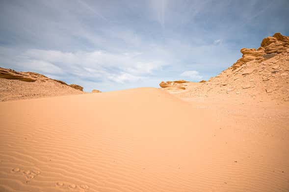 Then we'll pass through the city of Fayoum, eventually reaching Lake Qarun, one of the most important areas of the Oasis. Its salty waters are found below sea level, and it boasts an enormous surface of several hundred square kilometres. On its banks, we'll visit the Kas Karun archaeological site, an old settlement where temples and fortresses from different historical periods can still be found.
