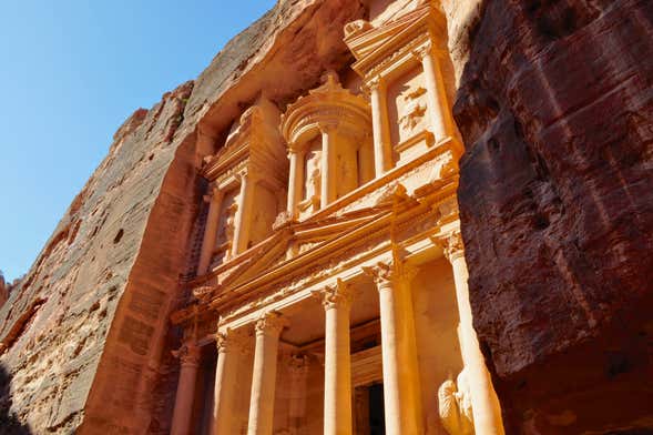 Once we arrive at the Jordanian terminal, we'll make our way by bus to the Petra archaeological site. There, we'll take a tour of the historical monument, all the while being guided by an English-speaking guide. The Nabataeans excavated various temples in the sheer rock cliffs of this desert region, and we'll visit some of the most important, such as the Al-Khazneh or 'The Treasury.' This monument, the best known within the complex, has been declared a UNESCO World Heritage Site.
