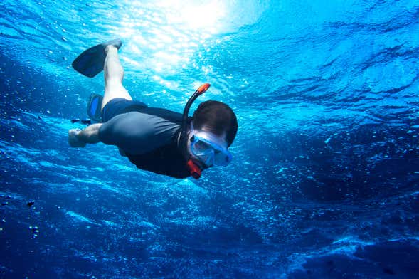 We'll meet at 3 pm at Passeig des Riu to go to the beach of Cala Galdana, where we'll pass out the material and hop on a boat that will take us to the best spots in Menorca to practice snorkeling.