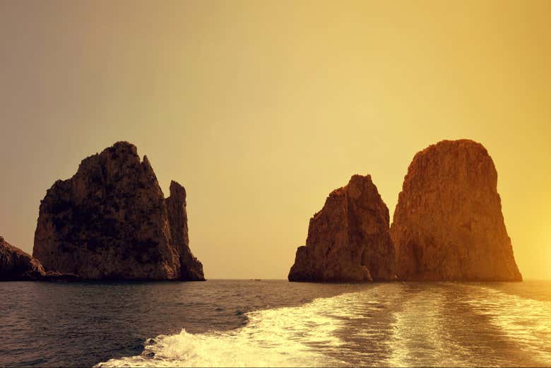 Lastly, before bringing this experience to an end, we'll make a stop near Faraglioni to watch the stunning sunset. In addition, the staff onboard will serve us a prosecco aperitif and some fresh fruit, as well as a limoncello tasting. What more could you ask for?