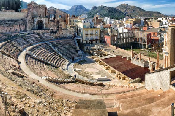 Then you'll arrive at the tunnel that passes under the medieval church and you'll find the perfect end to your visit: the Roman Theatre of Cartagena, one of the biggest in Spain. You'll be able to see the remains of its stage front, the orchestra, reserved for patricians and rulers, and the cavea, where the citizens of Cathago Nova sat, arranged according to social class.