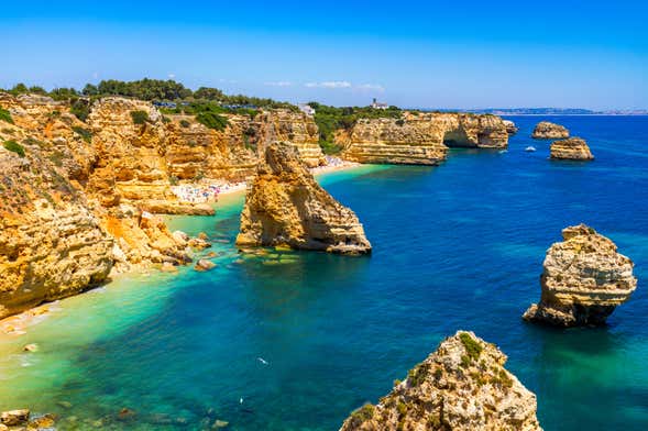 We'll meet at a time of your choice at Largo da Praia. From there, we'll walk to Carvoeiro beach, and get on a boat to tour the Algarve coast.