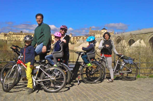 The route continues around the Jewish Quarter, known for its whitewashed houses, its terraces, and the vibrant splashes of color that the potted plants give to the neighborhood. And pedaling around the Jewish Quarter we'll reach the banks of the Guadalquivir River. This is the perfect place to tell some stories about the monuments you can find dotted around: the Mosque-Cathedral, the "Gate of the Bridge" or the Calahorra Tower, found on the other side of the river.