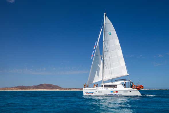 At the indicated time, we'll board the boat and start exploring Fuerteventura's northern coastline as we head to Wolf Island. Once there, we'll drop anchor in front of La Concha beach so you can enjoy different water activities. You'll be able to use kayaks, paddleboards, and snorkels.