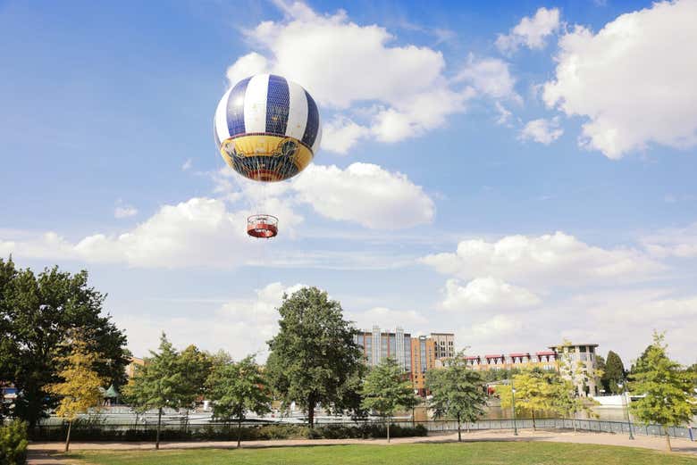 With your PanoraMagique ticket, you’ll ascend up to 100 meters (328 feet) above the ground for an unforgettable 6-minute adventure. From this height, you’ll enjoy a stunning bird’s-eye view of the Disneyland® Paris complex. Keep in mind, as this is a tethered balloon, it’s not a hot air balloon ride across the park but a stationary ascent offering incredible views.