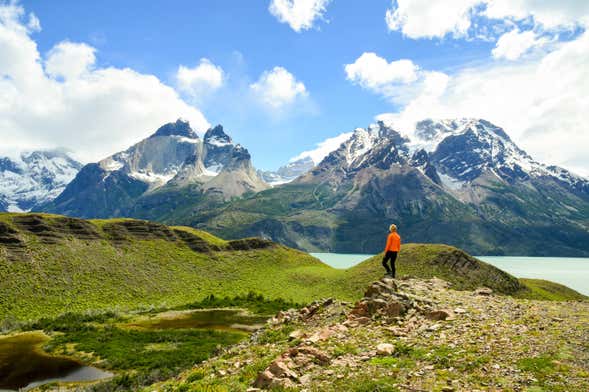 Following lunch, we'll head to the viewpoints of Nordenskjold Lake and Salto Grande. We'll then embark on a 1.5-hour trekking route to admire the impressive landscapes of turquoise waters and steep, snow-capped mountains that make up Torres del Paine.