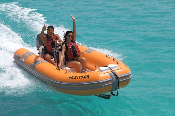 Once we've introduced ourselves, we'll do a brief safety training session before you get to drive your own speedboat. You'll have an English-speaking instructor to guide you in the speedboat throughout the entire activity. Our journey will begin by heading north along the Cabezas de San Juan Nature Reserve cliffs, crossing the El Yunque rainforest.