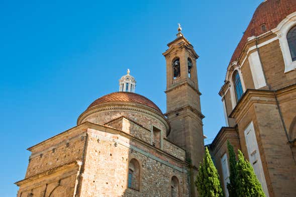 Moving on, we'll head to the Duomo, Florence's Cathedral. Here, we'll find a three-part complex made up of the Baptistry and Giotto's Campanile. Combined, these three structures, declared a UNESCO World Heritage Site, were constructed thanks to the support of Cosimo Medici. As we take in the sheer beauty of these structures, our guide will bring our attention to the gold-paneled "Gates of Paradise." What is its significance? We'll find out!
