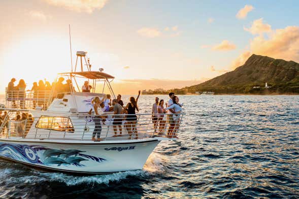 From the moment we arrive, a live DJ will have us all dancing to the music and enjoying the party atmosphere on board. As we take in spectacular views of the sea during the cruise, we'll witness how the sun begins to set on the horizon of Honolulu. Of course, you'll also be able to purchase drinks from the boat's bar.