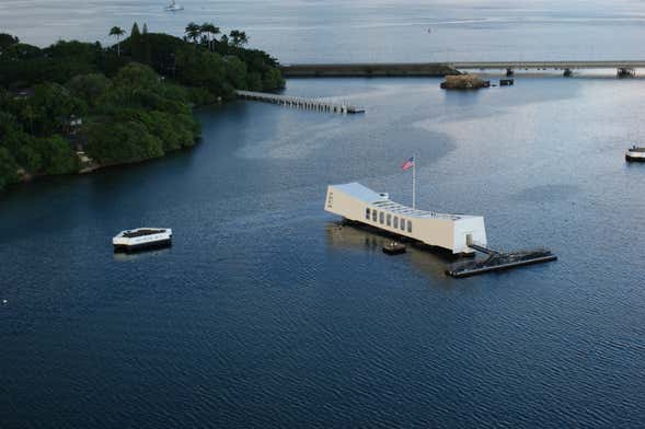 The first thing you'll do is watch an introductory video at the Pearl Harbor Visitor Center. After this short screening, you'll have the option of taking a ferry to the USS Arizona Memorial to continue the explanation of what happened in this bay on the island of Oahu. Visits to this memorial require advance booking by email, the address for which will be provided on your booking voucher.