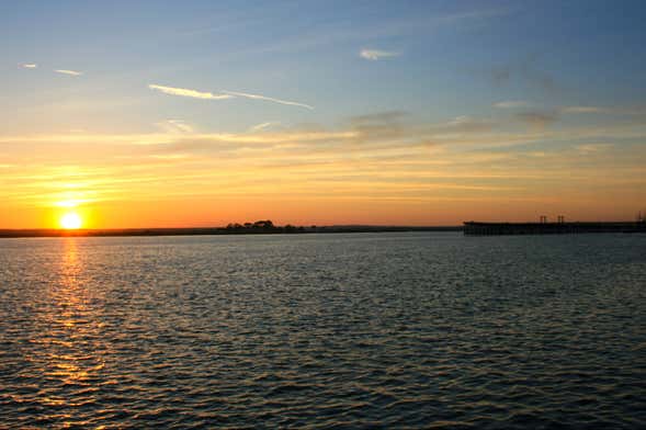 Cruise along the Huelva estuary by boat & discover beautiful Huelva landscapes bathed in the glow of the sunset. You'll see emblematic city monuments & sail through the Odiel Marshes.