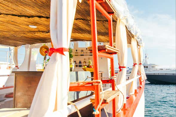 On this day trip to Formentera, we'll cruise along the beaches of S'Espalmador and Ses Illetes in a traditional wooden boat, and enjoy delicious snacks and an open bar on board!
