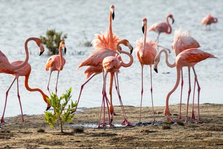After an hour exploring this underwater universe, we'll take a short trip to some secret mangroves on the island. There, we'll find a habitat of elegant Caribbean flamingos. In addition, throughout the snorkeling adventure, we'll also be surrounded by these beautiful wading birds.