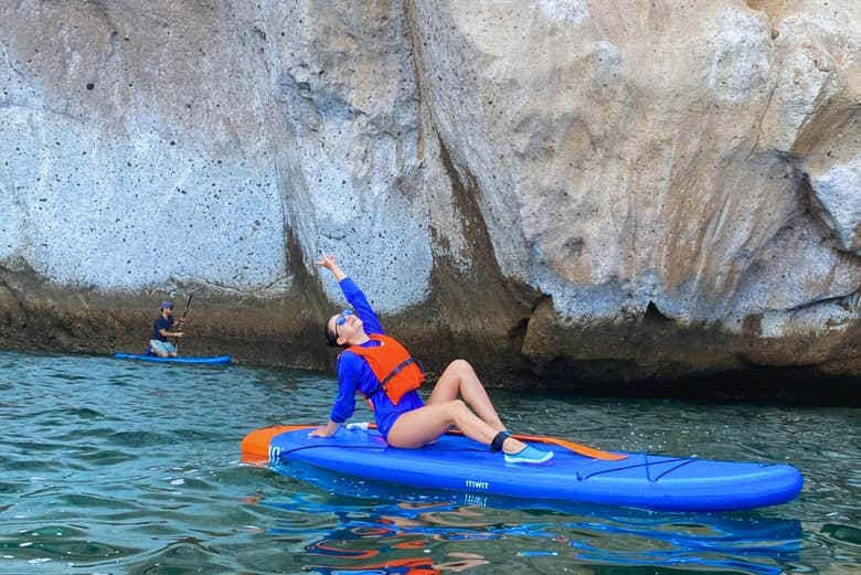 First up, we'll paddle board on the coast of La Caleta. In this town in the municipality of Adeje, in the south of Tenerife, we will discover beautiful hidden coves with turquoise waters and landscapes that will captivate you forever!