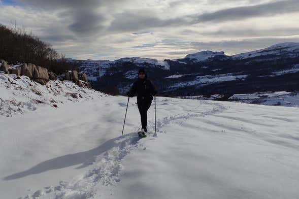 Once we're ready, we'll set off on a snowshoe walk through the Collados del Asón. On this route we'll walk through the snowy landscapes of one of the most beautiful mountain areas of Cantabria. In winter, this area of the Cantabrian Mountains is especially beautiful.