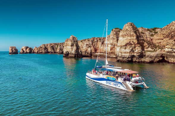 We'll meet at the Lagos marina and board a comfortable catamaran. Then we'll set sail along the beautiful Algarve coast, admiring the magnificent landscape of beaches and cliffs that characterise this region of Portugal. We'll also admire the Ponta da Piedade rock formations, the white sands of Praia da Luz and much more spectacular scenery.