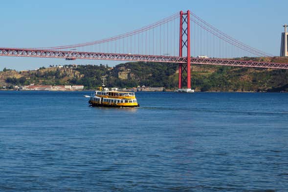 At the Terreiro do Paço Ferry Terminal, you'll board the sightseeing boat, ready to set sail on a comfortable journey down the river Tagus. You'll be able to choose between enjoying the views from inside the boat, or if you prefer, sit outside on the deck to feel the breeze as you cruise past the Portuguese capital's beautiful sights.