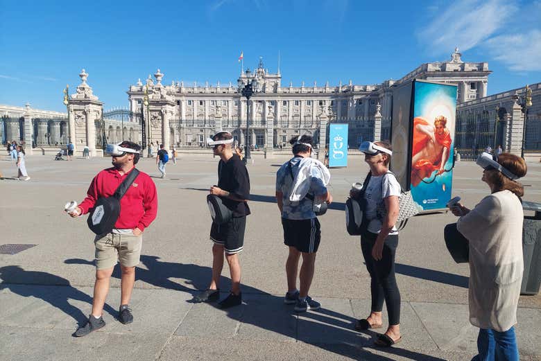 By putting on the virtual reality glasses, we'll travel back in time and see firsthand the changes that have happened to the most important sites in Madrid. Firstly, we'll head to the Plaza de Oriente, home to the Visigods and Christians. Thanks to a bird flying in the sky, we'll discover the secrets of ancient Madrid like you've never seen it before.