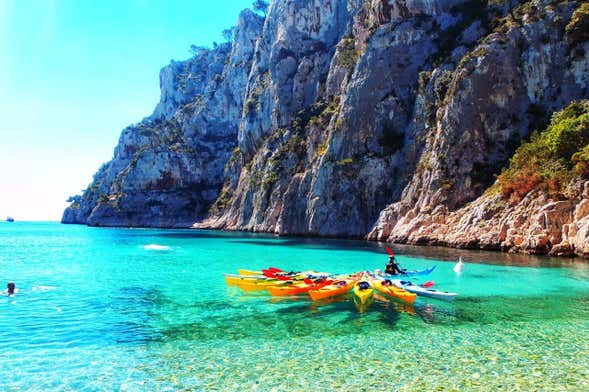 • Calanques National Park: we'll depart from Cassis to explore the most emblematic coves of the park: Port Pin, En Vau, and Sugiton. We'll kayak next to majestic cliffs, pass nearby islands, explore sea caves, and discover hidden faults. We'll stop several times to swim in the crystal-clear waters and enjoy the solitary beaches, inaccessible on foot. It'll be an ideal experience for nature lovers seeking tranquility.