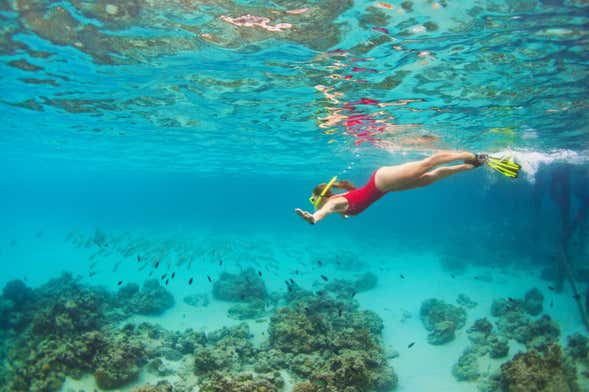 We'll refresh ourselves by snorkelling around the Edoume coves. Once we have our masks, snorkels and fins on, we'll explore the extraordinary marine landscapes of the surrounding area.