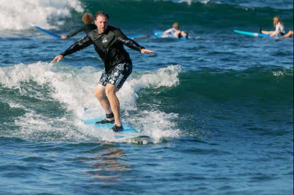 Next, we'll teach you how to handle the board, how to balance on it, and how to catch the waves. Then, it'll be time to hit the water and put what we've learned into practice! With the help of the instructor, we'll ride the waves and work on improving our technique.