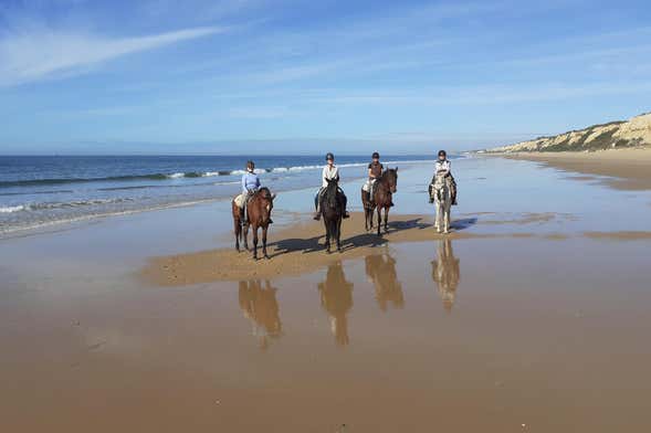 Afterwards, we'll climb up onto our horses and head towards the coastal areas of the Doñana National Park. During our route, we'll approach the seashore and also cross the Asperillo Sand Dunes. You'll be able to see a dramatic contrast between these sparsely vegetated areas and the wooden trails that'll be the main feature on the next part of our route.