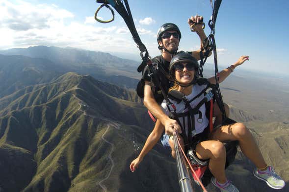 The flight will take place in tandem paragliders, which will be controlled at all times by the instructor. You won't have to worry about a thing! Just relax and take in the stunning bird's eye views of Mendoza.