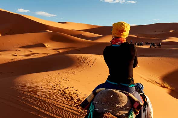 Climb aboard a camel and step into the endless sand dunes from Merzouga.