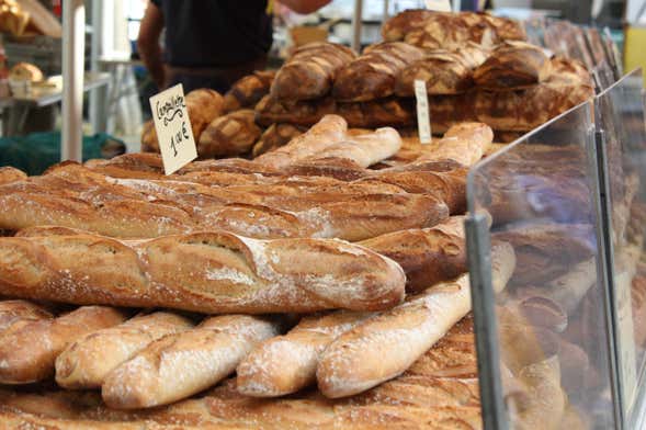 We'll continue exploring the streets of Montpellier to indulge in fougasse, a typical bread from the south of France, as well as tasty puff pastries, olive oils, tapenades, chocolates, and, of course, Occitanian wine!
