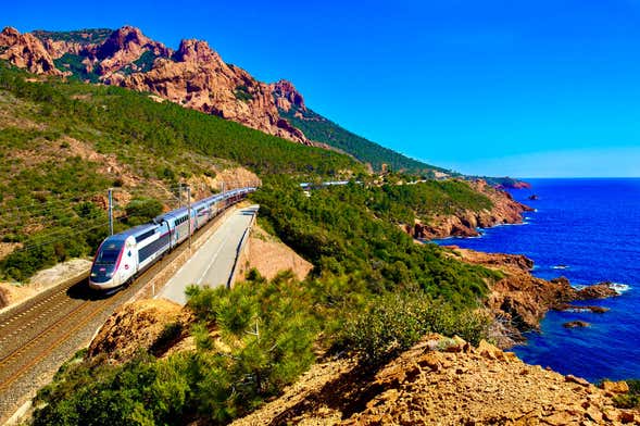 From Nice, we'll travel along a historic railway line dating back to the early 20th century that crosses the heart of the southern coast of France. Along the way, you'll admire the landscapes of the Massif de l'Estérel, including the Corniche d'Or and its characteristic ochre tones.