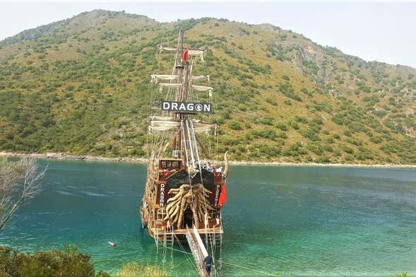 We'll meet at the Belceğiz Beach dock and board our pirate cruise ship to Ölüdeniz. Here, we'll set sail on an exciting adventure, sailing on an authentic recreation of a 17th-century ship, to visit one of the most beautiful waters along the Turquoise Coast.
