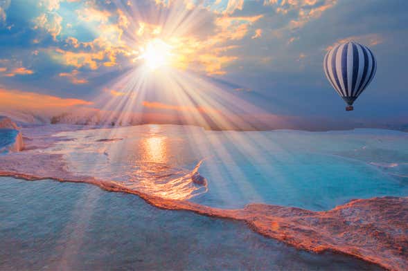 At the selected time, we'll pick you up from your hotel to go to the place where our exciting hot air balloon ride over Pamukkale will start. Ready to see the cotton castle from the sky?