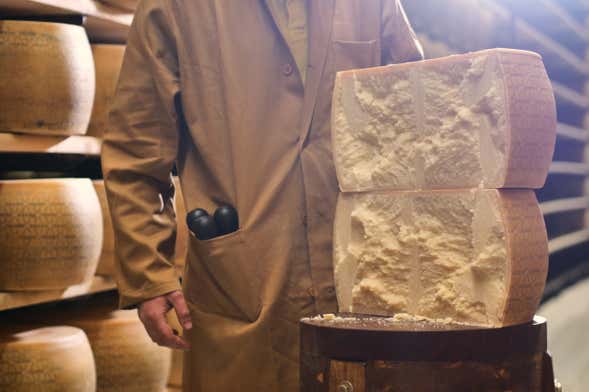After learning about the whole process, we'll be offered a tasting of various types of Parmesan cheese accompanied by local wine.