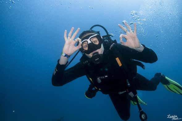 This activity will start with a short briefing in which we'll review some basic knowledge of scuba diving. Afterward, we'll put on our wetsuits and head to the coast of Playa Blanca, where we'll board a boat.