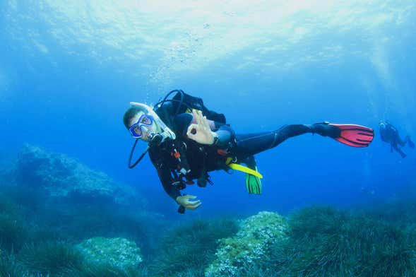 We'll meet at the dive centre in the commercial zone of Port d'Addaia. We'll start the activity with a briefing on the basics of scuba diving and get familiar with the equipment.
