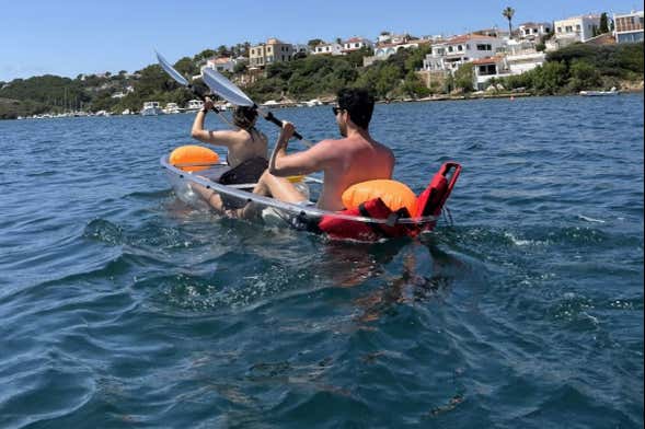 At the indicated time, we'll meet at the jetty of Puerto de Addaya to start this see-through kayak tour around the bay and islands of this town in the north of Menorca.