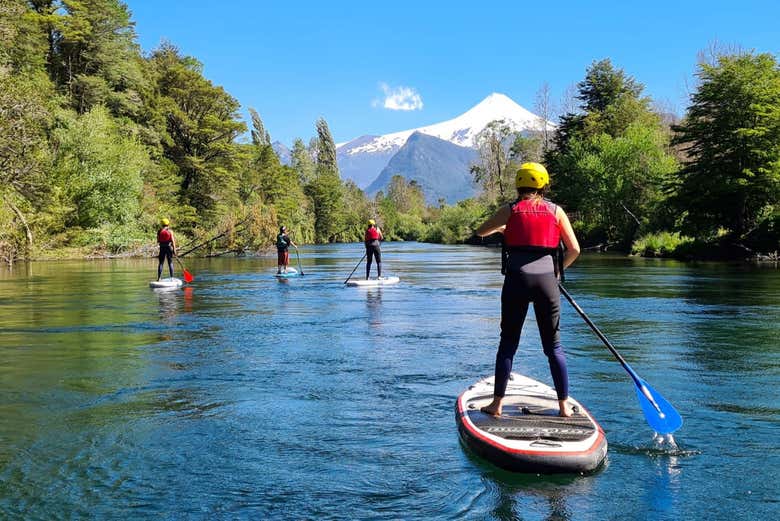After a journey of around 23 kilometres (14 miles), we'll arrive at Caburgua Lake. Once on the banks, we'll get all the necessary equipment ready and then hop on the standup paddle boards. Before we begin paddling, we'll be given instructions about the activity and learn about the environment that surrounds us.