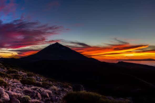 In addition, we'll admire the sunset on Mount Teide. As the sun begins to set behind the silhouette of this volcano, we'll gaze at the sky and the gorgeous hues of pink and orange that mark the transition from day to night.